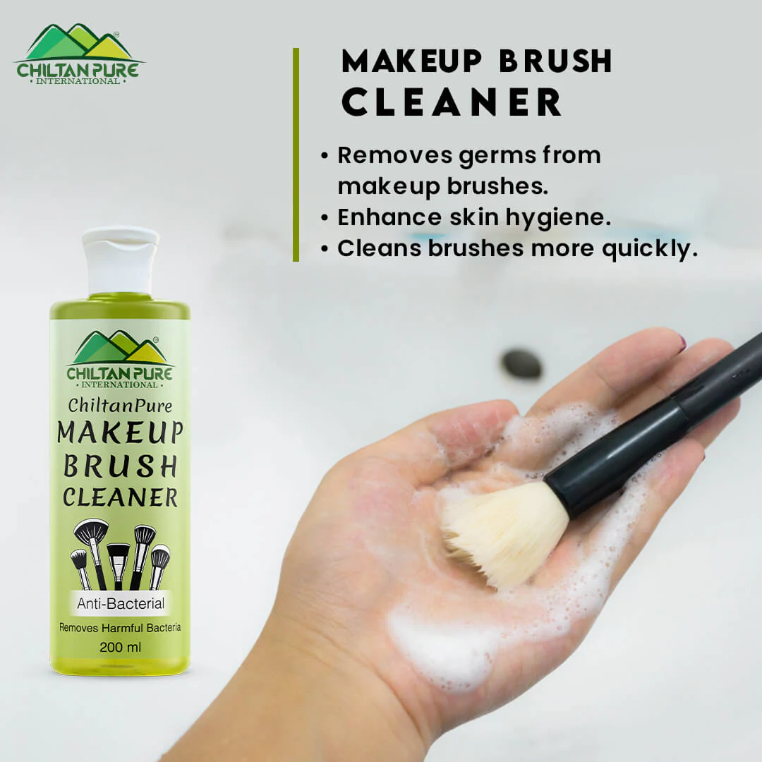 ChiltanPure Makeup Brush Cleaner is formulated to clean and sanitize your makeup brushes. It contains antibacterial & antiseptic properties that wash away traces of dirt, makeup, oil, and debris from your makeup brush while conditioning the hair to provide a clean and soft application. It quickly lifts away all types of makeup, including powder, cream, gel, or wax-based products, and maintains your brush’s original beauty.